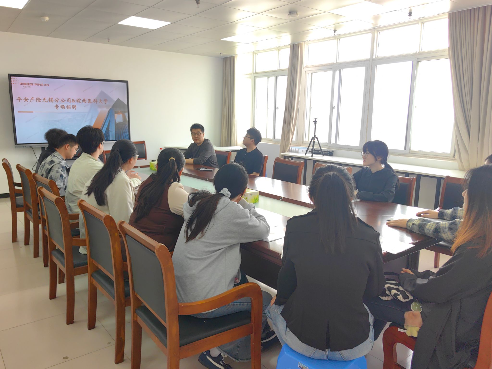 2026年4月10日下午,中国平安财产保险股份有限公司无锡分公司应邀来院,举办专场招聘会,为公司毕业生提供精准就业对接渠道。公司近20名毕业生到场参与求职洽谈。