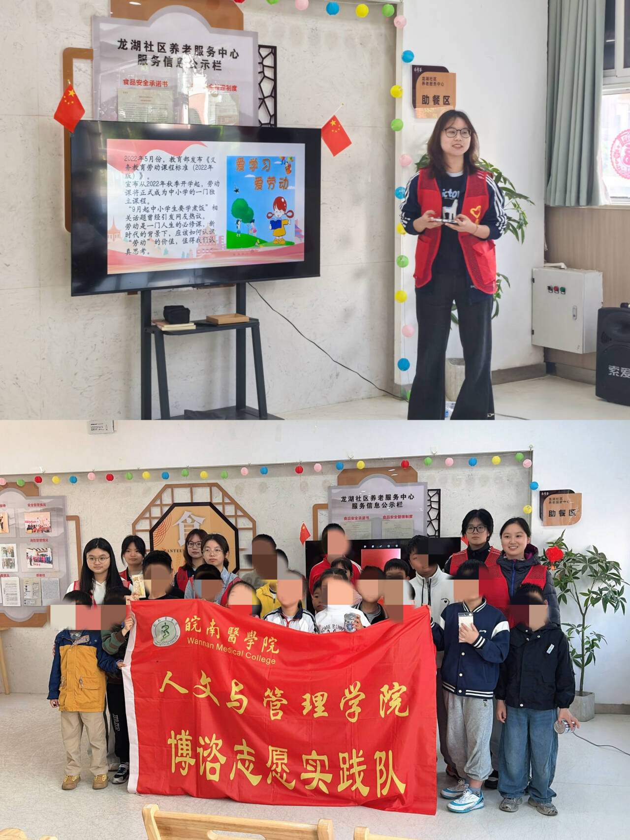 博谘实践队在龙湖社区为儿童举办以“民生在勤,勤则不匮”为主题的劳动教育宣讲。志愿者结合教育部劳动课程标准,讲述“治沙女王”的治沙事迹,引导儿童理解劳动价值。互动环节氛围热烈,社区儿童纷纷表示今后会尊重每一位劳动者,珍惜他们的劳动成果。