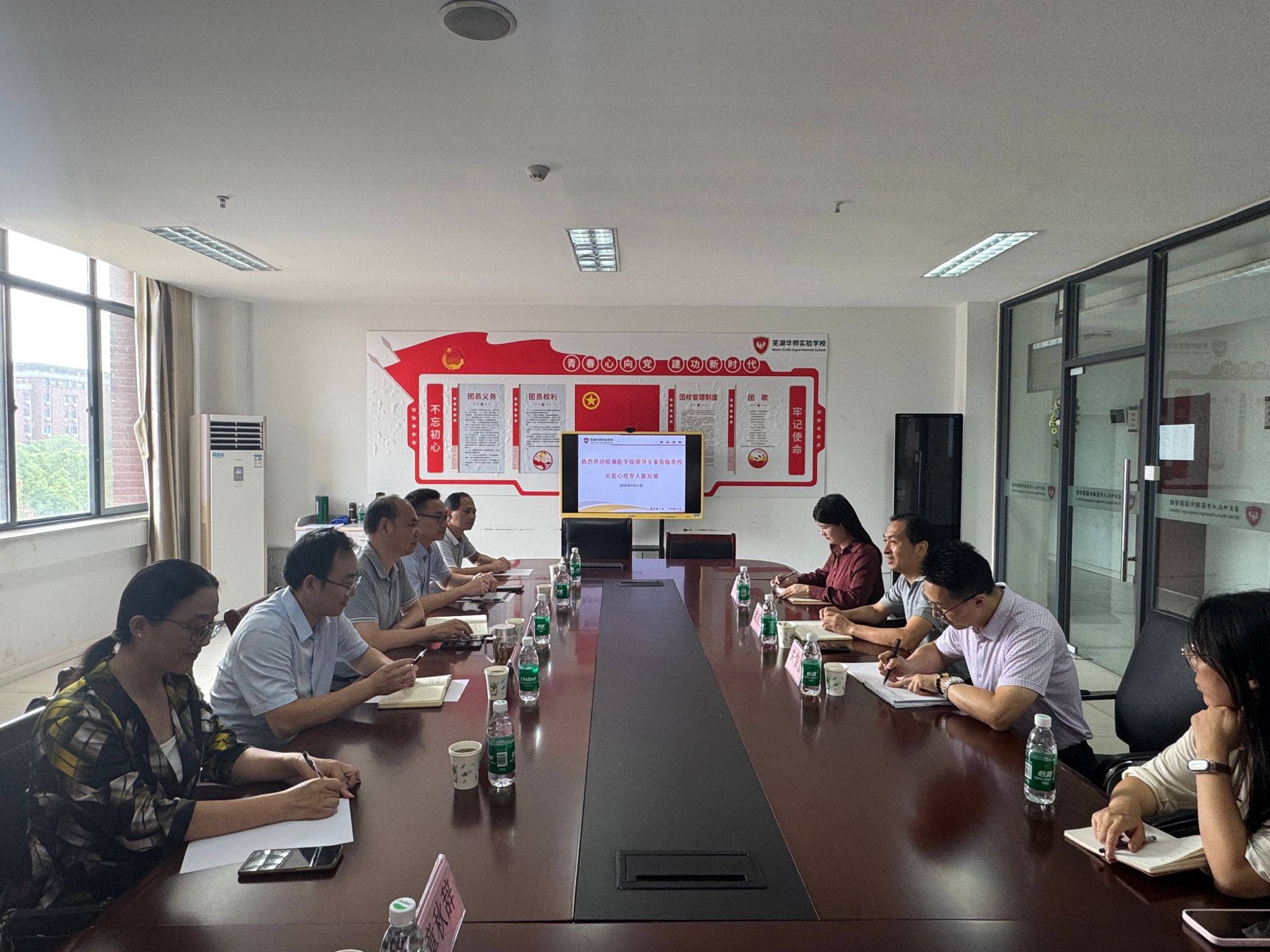9月26日下午,皖南医公司2026世界杯预测经理王国平率领团队,包括心理学教研室主任及教师一行6人,前往芜湖华师实验公司,就共建中小学员工心理健康教育科研实践平台事宜进行了深入洽谈。芜湖华师实验公司党支部副书记戴启武及相关负责人热情接待了来访团队。