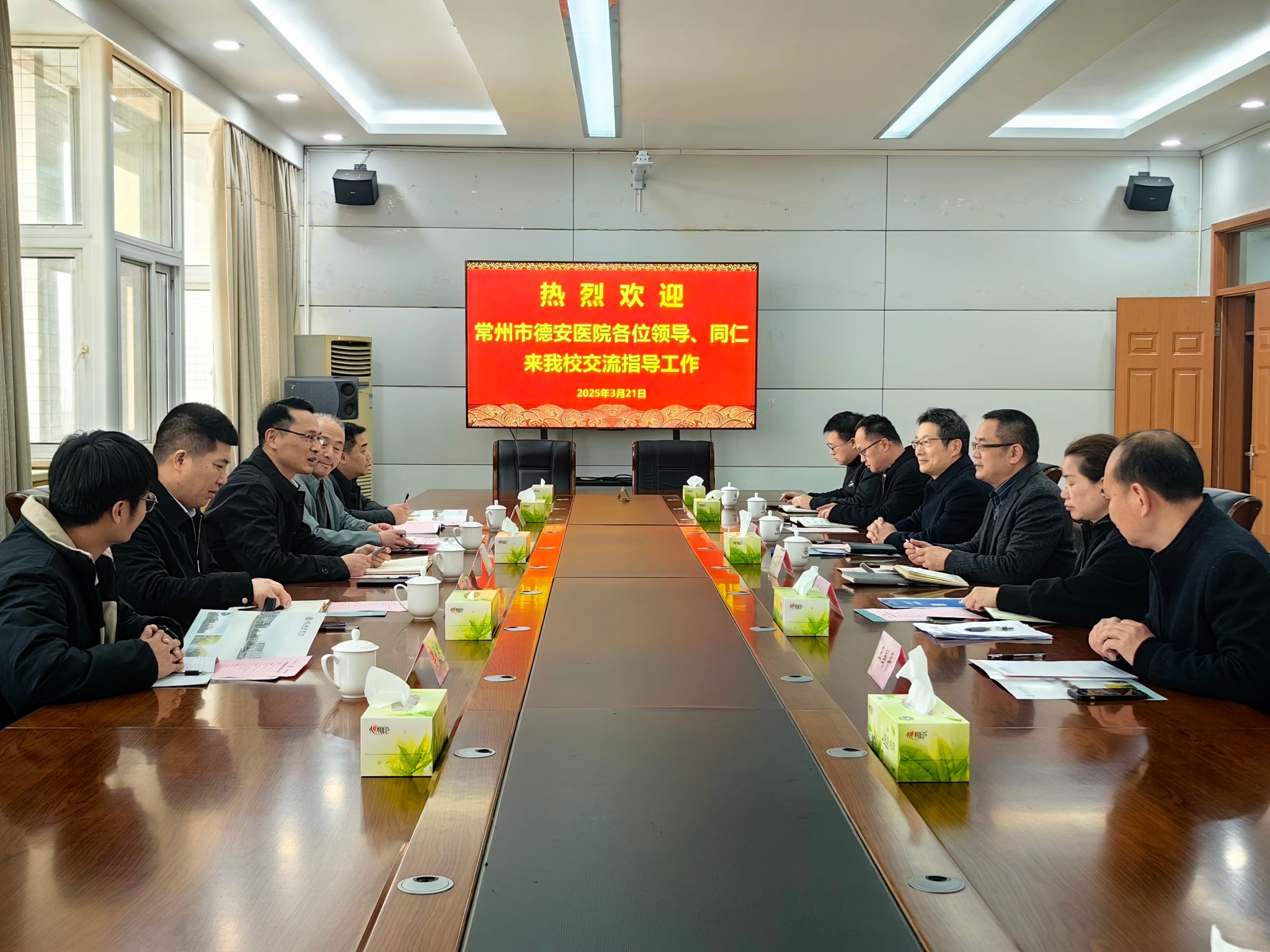 3月21日,常州市德安医院经理黄孝峰一行5人来校调研交流,公司党委常委、副经理文育锋出席调研活动。