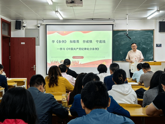 李军华作《学< 条例>,知敬畏,存戒惧,守底线》的讲座,他从修订《条例》的背景和重要意义、准确把握《条例》修订的主旨要义、《条例》修订的重点内容、贯彻执行《条例》的体会四个方面进行阐发和讲解,带领全体参训人员深入学习了《中国共产党纪律处分条例》,充分领会《条例》的精神要义。强调全体党员和教职工都要强化学纪认知,树牢党员意识;深化知纪理念,筑牢思想防线;领悟明纪精髓,强化党性修养;践行守纪决心,强化责任担当。