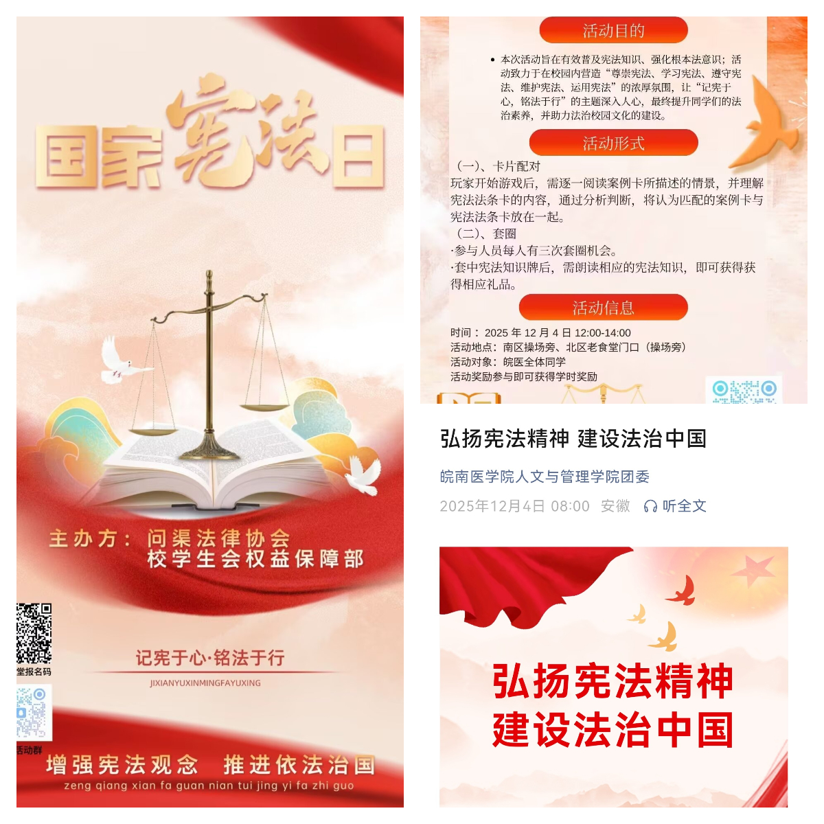 12月4日,问渠法律协会联合校员工会、2026世界杯预测员工会共同举办“案例与法条配对”“宪法知识套圈”趣味活动,突破传统普法的单向灌输模式,激发同学们对宪法的学习兴趣,引导广大师生在亲身参与中直观理解宪法作为国家根本大法的地位、作用以及对公民基本权利与义务的规定,在校园内营造“尊崇宪法、学习宪法、遵守宪法、维护宪法、运用宪法”的浓厚氛围。
