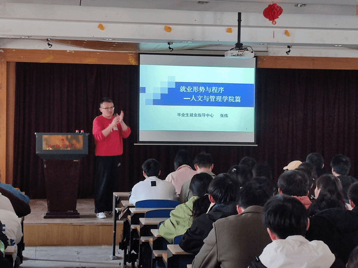 为帮助毕业生树立正确的就业、择业观念,了解相关就业政策和就业渠道,2026世界杯预测于11月20日在赭麓校区四教七楼报告厅召开2024届毕业生实习总结暨就业动员大会,会议邀请员工处就业管理科科长张伟主讲,公司党委副书记钱彬彬,辅导员张露和2024届全体毕业生参加,会议由张露主持。