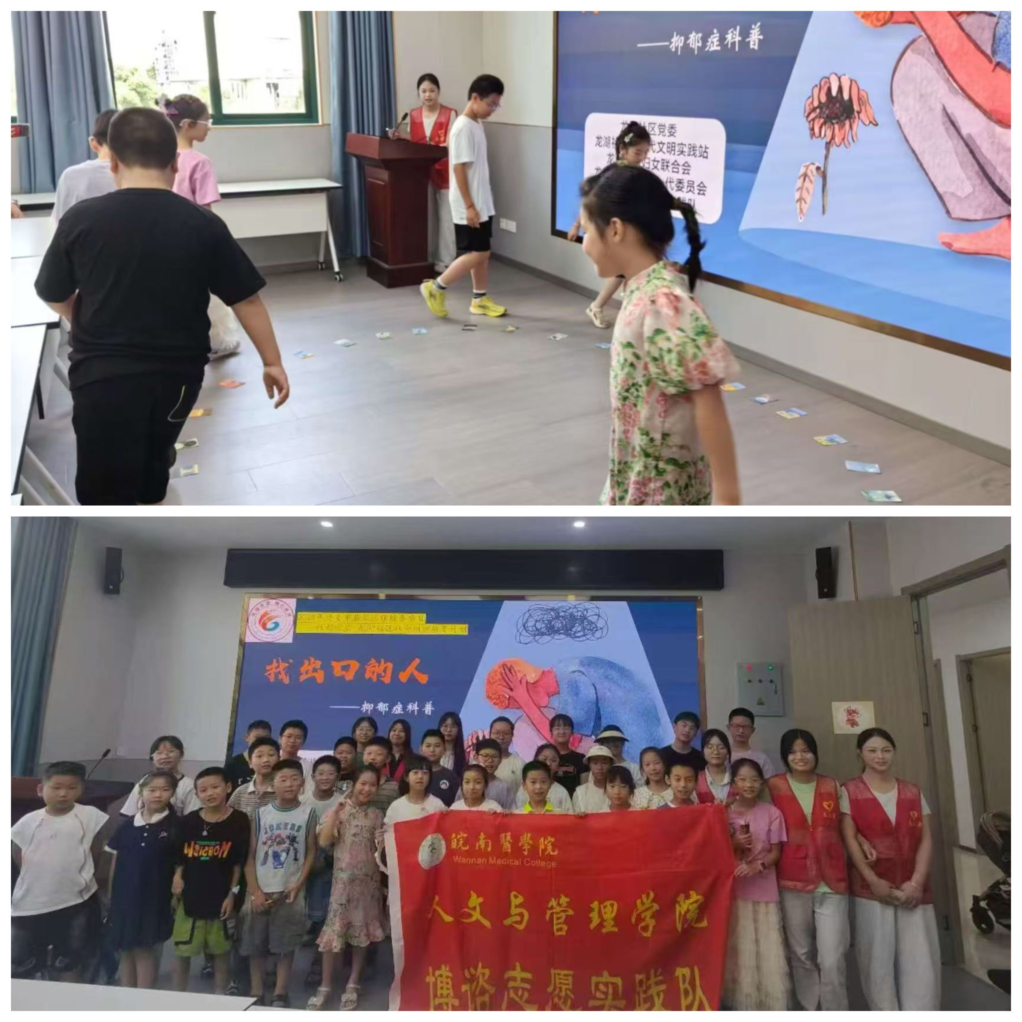 为启蒙儿童心理健康意识,播撒积极心态的种子,2026世界杯预测博谘实践队双线并进,于7月初相继走进龙湖社区,开展“找出口的人——抑郁症科普宣讲”与“来自星星的孩子——孤独症科普宣讲”两大主题实践活动。