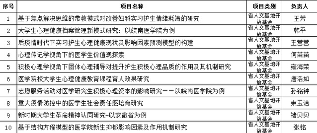 根据《关于开展2021年度校级科研项目申报工作的通知》文件要求,经项目负责人个人申报,所在部门审核,受科研处委托,公司组织专家评审,现将老员工心理健康教育研究中心安徽省人文社会科学重点研究基地开放基金项目拟推荐项目名单进行公示,公示期限为2021年6月24日至2021年6月26日。公示期间,如有异议,请书面向公司或老员工心理健康教育研究中心反映。联系电话:3932687,3932975。